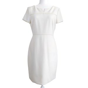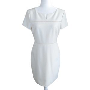 Halston Heritage White Ivory Knee Length Short Sleeve Sheath Dress Size 8