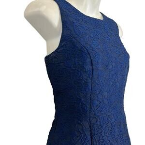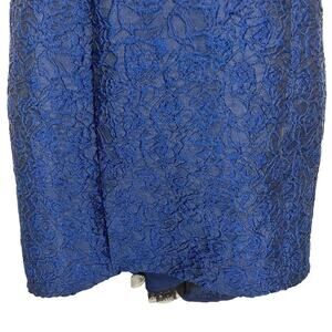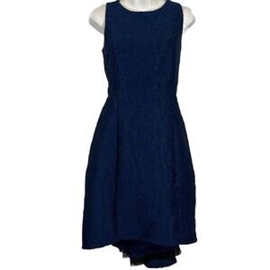 This Halston Heritage cocktail dress is a stunning addition to any wardrobe. The dress features a blue floral pattern, a round neckline, and a sleeveless design that is perfect for summer, fall, and spring occasions. The dress is made of a high-quality blend of polyester, nylon, and polyester blend materials and is lined for added comfort. The dress has a zip closure and accents with pockets, making it both functional and fashionable. The fit and flare style of the dress is flattering and perfect for any body type. The dress is size 4, and the garment care instructions recommend dry cleaning only. This dress is perfect for any party or cocktail occasion, and its hi-low dress length adds a touch of elegance to your overall look.