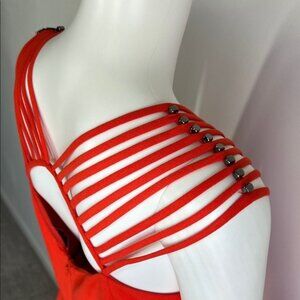 Halston Heritage Women's Multi Strap Sleeve V-Neck Gown with Flowy Skirt Size 4
