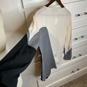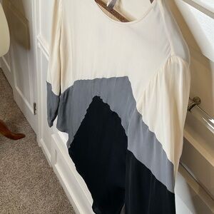 Halston Heritage abstract print black, grey & cream blouse. 100% silk …button cuff closure