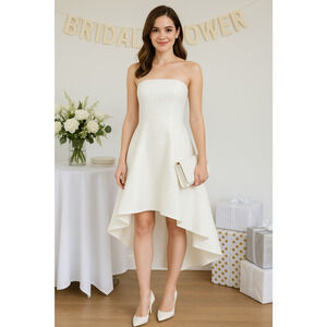 Halston Heritage bridal White Jacquard bandeau asymmetrical strapless Dress Size 4 $475