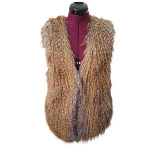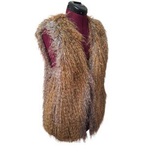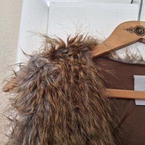 shaggy, multi-brown faux fur exterior and an open front. Clasp chest closure, great condition and very fluffy