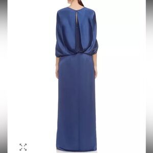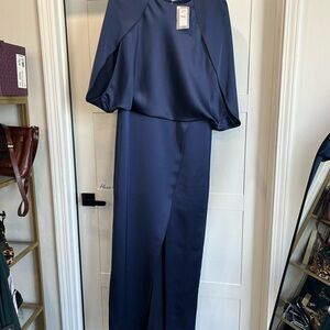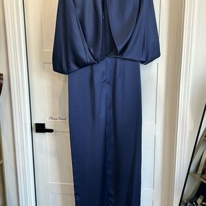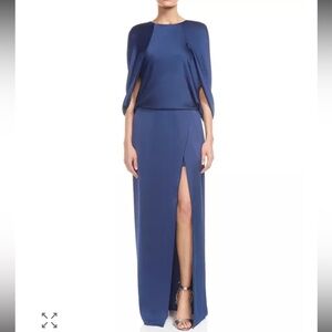 Halston Heritage navy cape-sleeve satin gown size 6 NWT