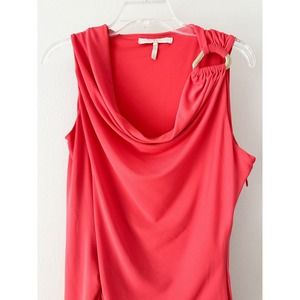 Halston Heritage stretch Dress Cowl Neck Ruched Golden Detail