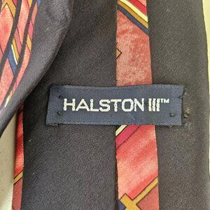 Halston III 60s Mens Tie Italian Silk Rose Black Geometric Design 4 x 57