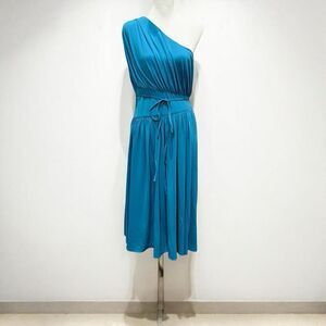 Halston Idalia One Shoulder Ruched Midi Dress Stretch Cocktail Blue Teal 10 NWT
