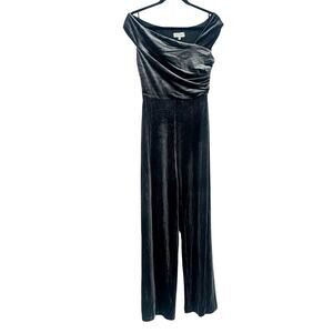 Halston Off the Shoulder Wren Steel Velvet Jumpsuit Ruched Wide Leg Size 4