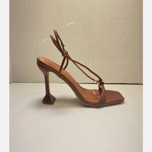 Halston Picasso Lace Up Sandal Spool Heel Square Open Toe Tan Brown 7