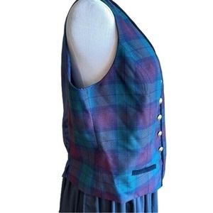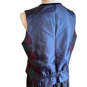 Halston Plaid Vest Green Red Button Up Wool Size 12
