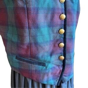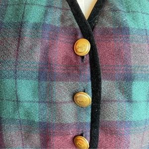 Halston Plaid Vest Green Red Button Up Wool Size 12 Vintage