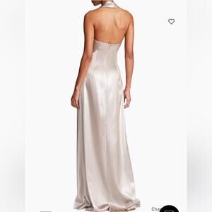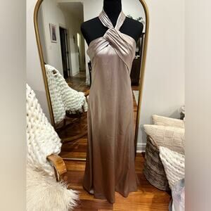 Halston Raelynn Metallic Crepe Halter Gown