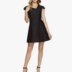 Caped one shoulder mockneck in a flattering crepe sheath dress asymmetrical for a sophisticated old money vibe.