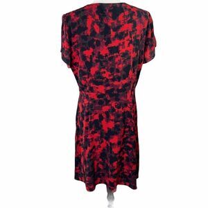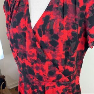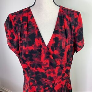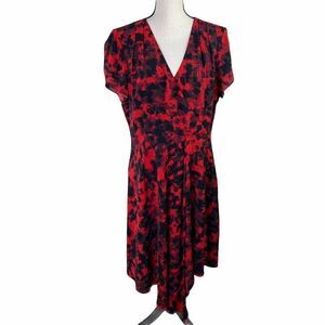 Halston Red/Black Short Sleeve Faux Wrap Dress Sz L