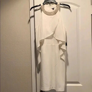 Halston Sequin Dress Jeweled Round Collar Sleeveless White Size 6 NWT