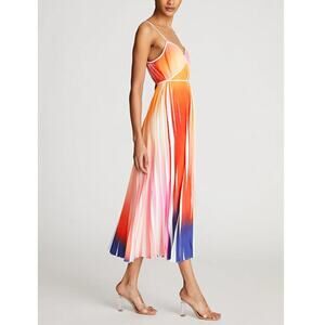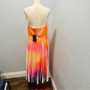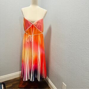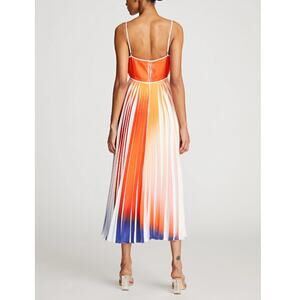 Halston Size 14 Mollie Dress Orange White Pleated Vibrant Date Night Wedding