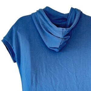 Halston Studio Blue Hoodie has Cap Sleeves and Drawstring Oversized Size Medium