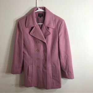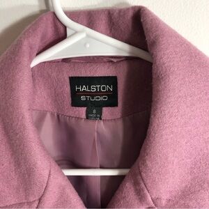 Halston Studio Wool Pea Coat Sz 8 Purple Jacket Double Breasted