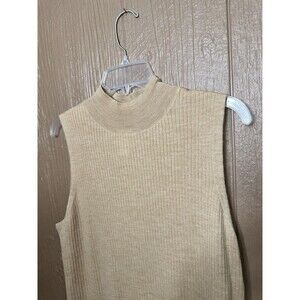 Halston Turtle Neck Beige Rank Top Sweater 100% Merino Wool Size XL Warm Cozy