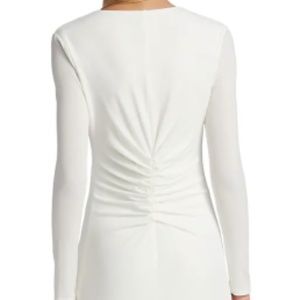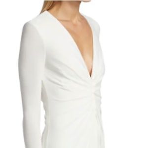 Halston V-Neck Ruched Jersey Gown (White, Medium)