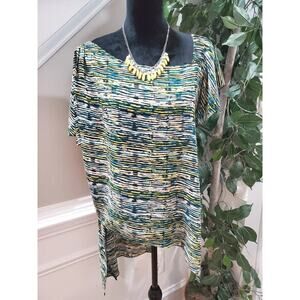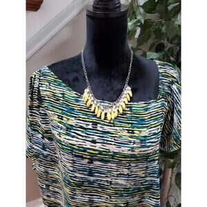 Halston Women's Multicolor Polyester Short Sleeve Pullover Top Casual Blouse L