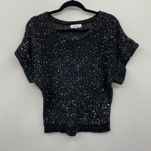 Halston black sparkle short sleeve top. Perfect for an evening out or holiday. Great preowned condition