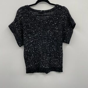 Halston black sparkle short sleeve top