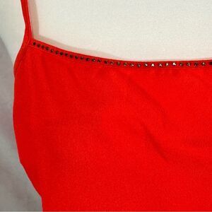 Simple and sexy slip dress. Gun metal studs that line the top and front bottom hemline. Adjustable straps. Euc