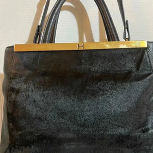 Halston calf fur & leather satchel handbag