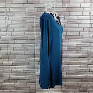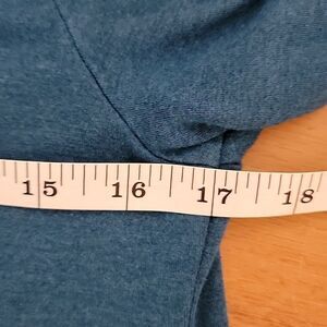 Modal spandex blend super soft and stretchy and slightly warm classic crewneck top by Halston in a marled turquoise color. All day comfort in a relaxed fit that drapes nicely. This top is labeled extra small but it has the measurements of a medium.