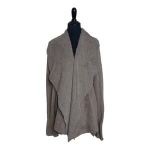 H by Halston sand brown drape front waterfall faux suede sweater coat size 1X