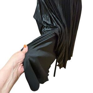 Step out in style with this stunning black pleated midi dress from H by Halston. Designed with elegance in mind, this dress features a timeless silhouette, perfect for both formal events and upscale casual outings. The delicate pleats create a graceful flow, adding sophistication to your look. Made with high-quality fabric, it's comfortable yet chic.