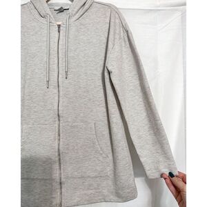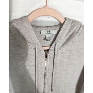 Halston Heritage soft cream sweatshirt || zip up front with hood || soft fleece on the inside without being heavy || excellent condition || size XS but fits very oversized-fits like a large ||