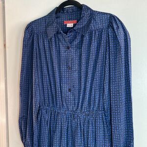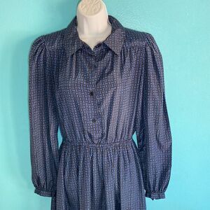 Halston III 1980"s Vintage Dress Size 8 - Blue Logo Print