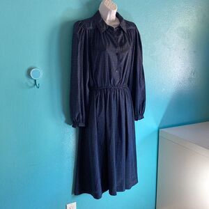 Halston III Womens Size 8 Vintage 1980's Blue Logo Midi Dress Perfect Condition