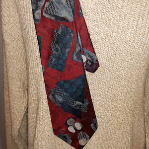 Excellent condition men's Halston tie, colors are Maroon black and gray pattern imported polyester