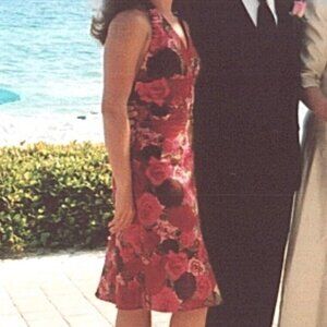 Classy Rose Patterned Halter A-line Dress, Cotton Spandex, Size 2. This is my favorite dress of all time. Very flattering and the colors are still so vibrant. I hate to part with it but i've had my photo taken in it at a few weddings. It's very well made and still like new. Bought in a boutique in Hawaii. Brand is called Hype.