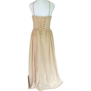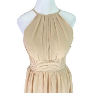 Halter Bridesmaid Backless Long Dress Evening Dress Formal Champagne Tan Size 4