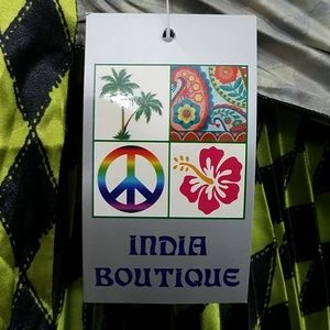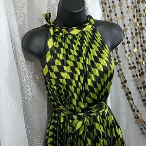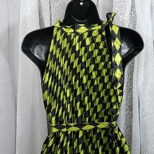 Silky, shiny, green and black diamond patterns. Ties at waist. One size.