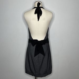 Unique halter dress sewn from pants perfect for waitress, hostess, caterer or party. Could be worn over a shirt, or as a sexy open back halter.