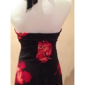 Flirty floral cocktail dress. Low cut. 92% polyester/8% spandex. Inside of bottom dress has a black mesh to give it a cute flair.