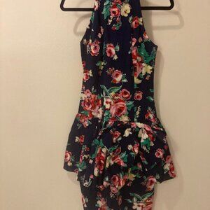 one piece double layer halter dress - overlapping to pencil skirt. The dress also has a large bow to the left of dress. This dress is elegant, fun, colorful, bubbly and assure you will stand out in the crowd and not just another black dress.
