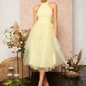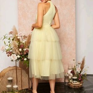 Halter Neck Layered Hem Mesh Bridesmaid Dress Tulle Dress Elegant Prom Semi Form