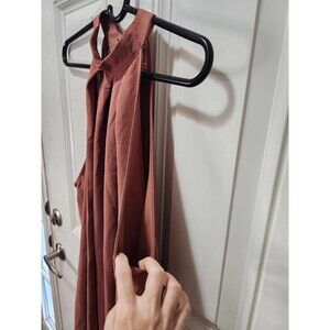 Halter Neck Midi Sleeveless Relaxed Loose Fit Flare Dress Rose Womens Size Large