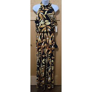 Halter Neck Tropical Leaf Print Maxi length romper mob wife bold gala club life