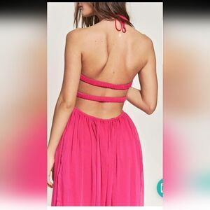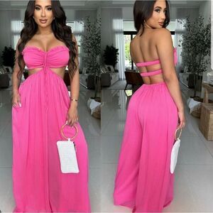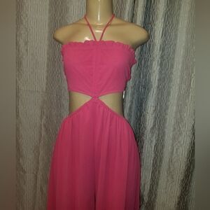 Halter Pink Sparkle Cut Out Casual Summer Ladies Strapless Halter Jumpsuit L