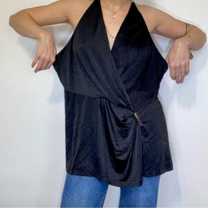 💫 Halter Surplice Y2K V-Neck Victoria’s Secret Black Spandex Halter Club Top