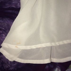 Sheer bottom . Zips up & down . No padding ( the material is thick enough ) . tiny makeup stain , not even noticeable.