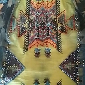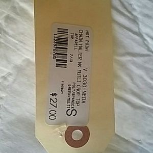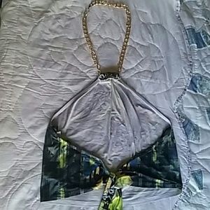 Multi colored halter crop top attaches at the neck with a chain and ties in the back. Perfect for the club.