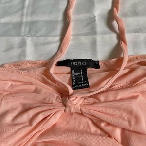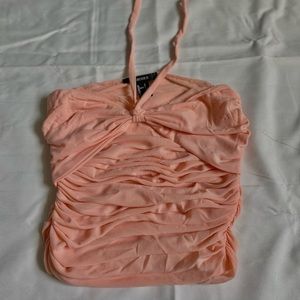 Salmon colored ruched halter top