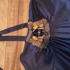 Victoria's Secret built in bra halter top. Very comfy and perfect for vacation or any date night with really cute embellishments on the front. Navy color.